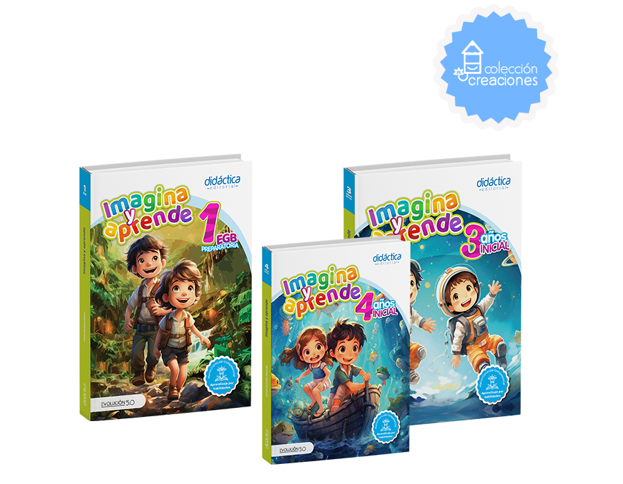 Los textos “Imagina y Aprende” están diseñados específicamente para los estudiantes de Nivel Inicial y Preparatoria. Estos